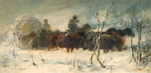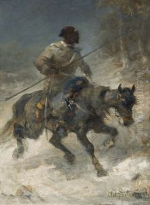 Winterlandschaft Mit Zwei Berittenen Soldaten