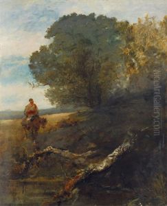 Vieh- Und Schafherde Mit Eselreitendem Hirtenknaben In Weiter Landschaft