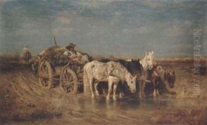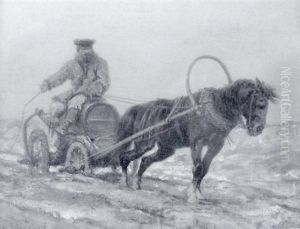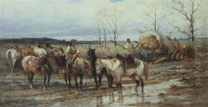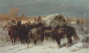 Wallachian Winter Scene With Team Of Horses