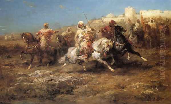 Bring the timeless beauty of Adolf Schreyer's Arab Horsemen into your home with a handmade oil painting reproduction. Carefully recreated on canvas by skilled artists using traditional techniques, this piece captures the delicate brushwork, subtle light, and vibrant color of the original masterpiece. With museum-level quality and rich texture, it brings elegance and artistic depth to any space. Enjoy free shipping and make this masterpiece a part of your personal collection.