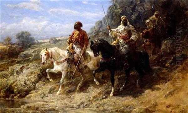 Arabian Horsemen Descending From The Hills