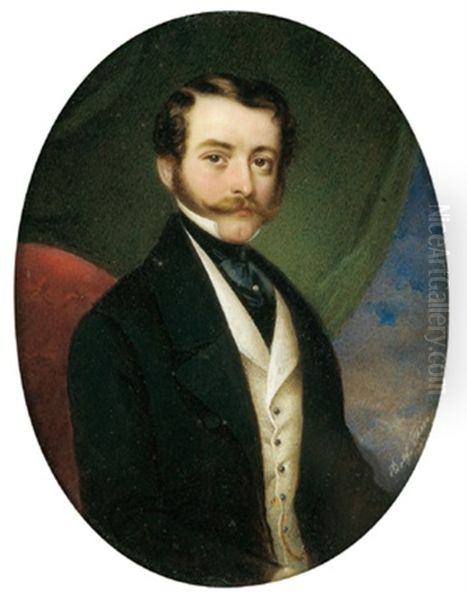 Bildnis Eines Herrn Mit Schnurrbart, Vor Einem Grunen Vorhang Sitzend (johann Dryak, Vetter Von Professor Podrazil In Graz?)