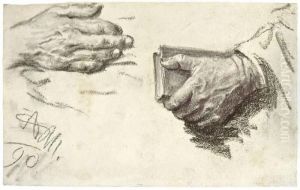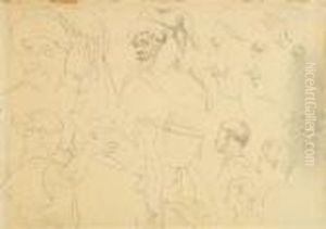 Studienblatt Mit Figuren- Und Kopfstudien Und Einer Handstudie.