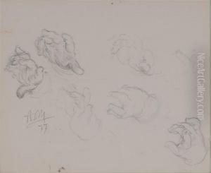 Two Studies Of A Man's Left Arm, With Sleeves Rolled Up, Holding The Handle Of A Basket