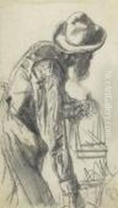 Two Studies Of A Lady Wearing A Straw Hat