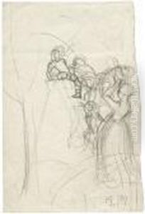 Study Sheet With A Boy Viewed From The Back And A Portrait Of A Woman