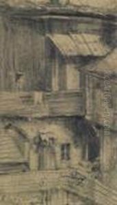 View On The Backyard. Signed Lower Left: A. Menzel
