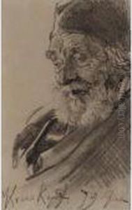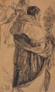 Studienblatt Mit Stehendem Mann Und Kopfstudie Eines Bartigen Herrn. Monogrammiert Und Datiert Unten Rechts: A.m./98. Bleistift, Gewischt, Auf Papier. H 18,2; B 12,1 Cm. Provenienz: Suddeutsche Privatsammlung.