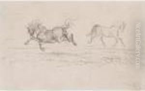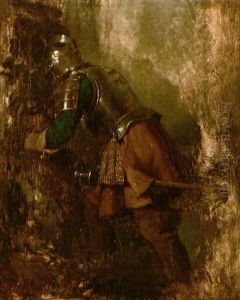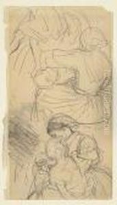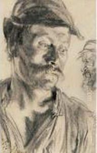 A Seated Man Looking Down To The Right, A Bearded Figure Seen Inprofile Beyond