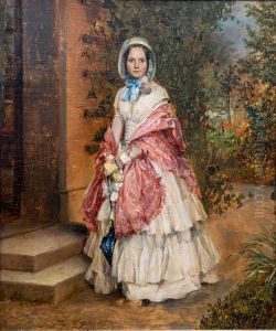 Auf Einem Stuhl Sitzende Dame Im Ballkleid, Aus Einem Suppentasschen Loffelnd