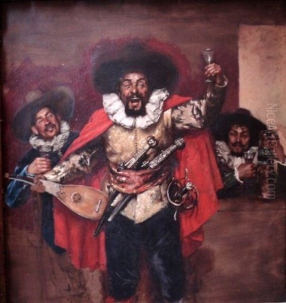 Scene De Taverne Oil Painting by Adolphe Alexandre Lesrel