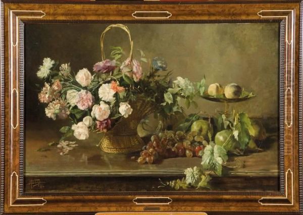Nature Morte A La Corbeille De Fleurs Et Aux Fruits