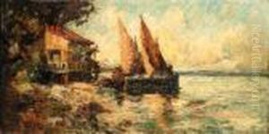 Fishermen Lifting The Nets Before The Storm, Coastal Scene