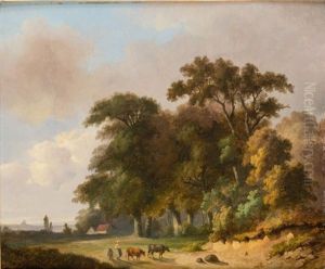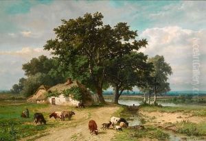 Personnages Et Betail Dans Un Paysage Champetre