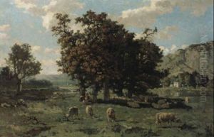Paysage Avec Vaches Et Trayeuse