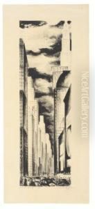 View Of The Skyride, Evening At The Century Of Progress International Exposition, 1934
