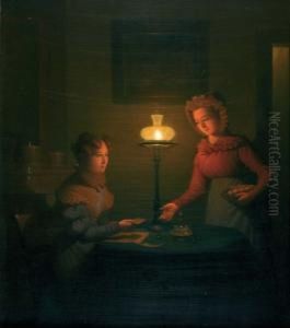 Lady And Servant Girl By The Light Of An Oil Lamp