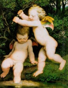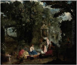 A Classical Landscape With Nymphs Bathing In A Grotto