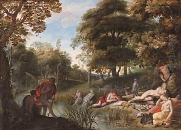 A wooded landscape with Diana and her nymphs resting after the chase