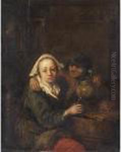 A Peasant Seated At A Table Holding Anearthenware Jug