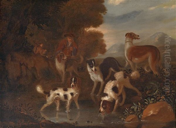Zwei Landschaften Mit Jagdhunden (pair)