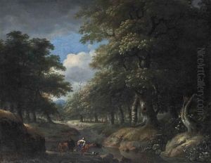 A Wooded Landscape With Travellers On A Path