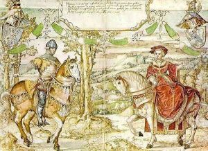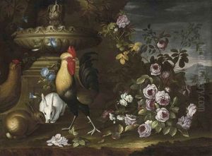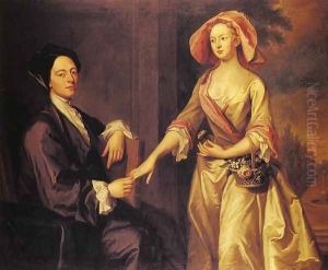 Portrait Of A Lady And Gentleman (charles, Lord Herbert And His Wife, Mary?) By A Sculptural Fountain