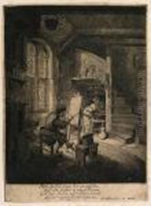 An Alchemist Near A Fireplace In His Studio