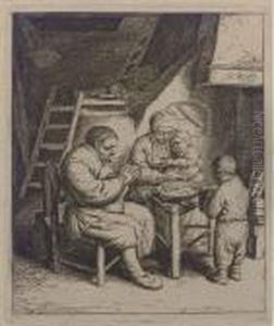 A Barn Interior With Peasants Smoking And Drinking