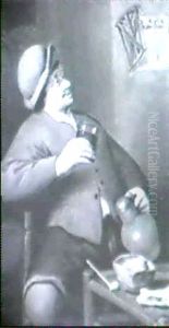 A Barn Interior With Peasants Smoking And Drinking
