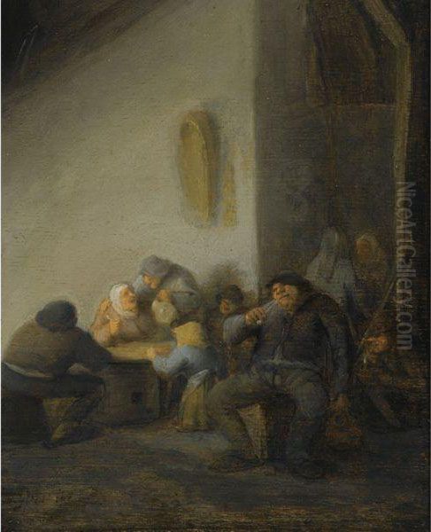 An Interior Of An Inn With Peasants Smoking And Drinking