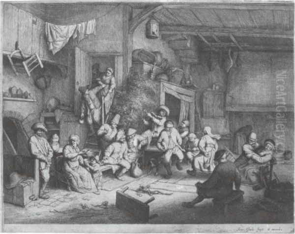 The Dance In The Inn (g., Holl. 49) Oil Painting by Adriaen Jansz. Van Ostade