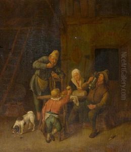 Peasant Figures Smoking And Drinking In A Tavern Interior