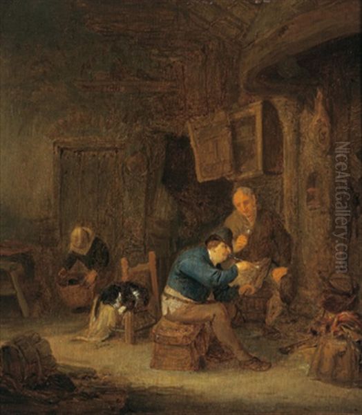 Bauern In Einer Scheune Oil Painting by Adriaen Jansz van Ostade