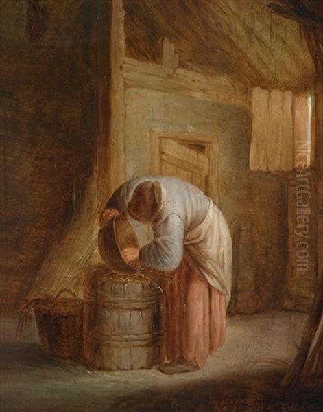 Scheuneninterieur Mit Einer Magd