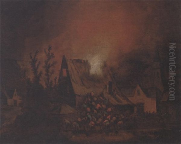A Village On Fire At Night