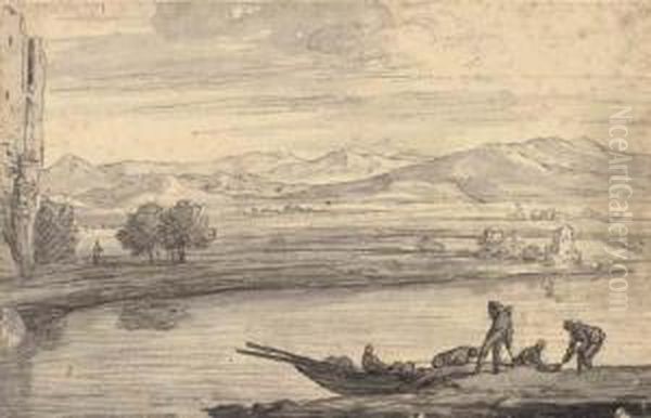 An Italianate Landscape With Boatmen On A River