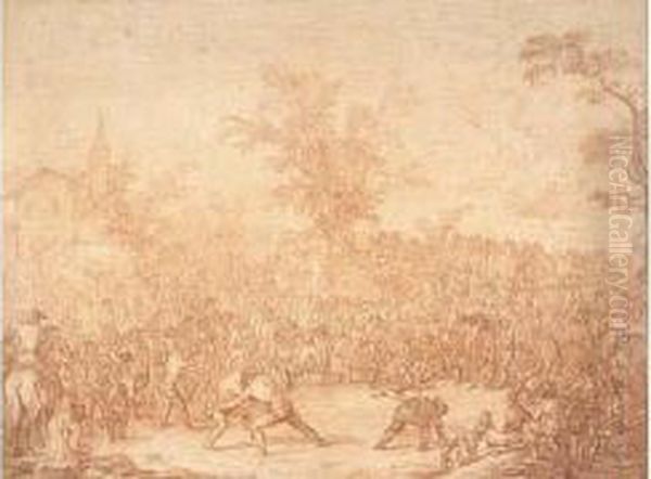 Attroupement Autour D'une Scene De Lutte Dans Un Village