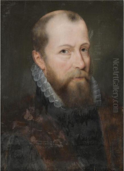 Portrait Of A Bearded Gentleman, Head And Shoulders, Wearing A Fur-lined Cloak And A White Embroidered Collar