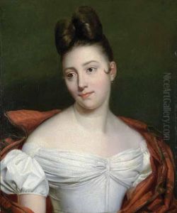 Portrait Of A Child, Three-quarter-length, In A White Dress And A Red Coat, Seated On A Pillow, Holding A Bunch Of Flowers