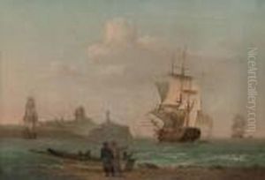 A Mediterranean Coastal Landscape With Fishermen And Merchants On Aquay By A Ruined Tower