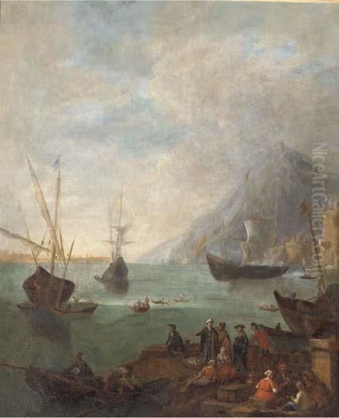 A Mediterranean Coastal Landscape With Fishermen And Other Figures In The Foreground