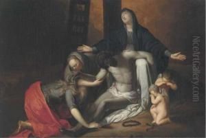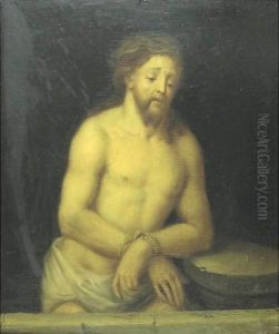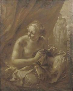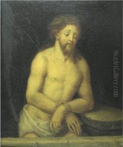 Portrait Of A Gentleman, Standing Beside A Cistern, Holding A Spear