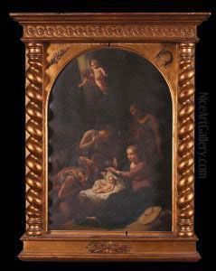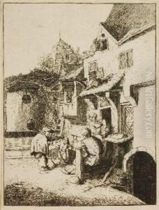 A Young Man At A Balcony With A Bird Cage, A Boy With A Cat Looking On