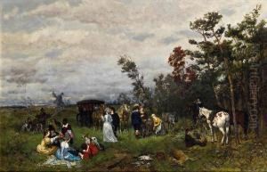 Landskap Med Jagare Och Villebrad Oil Painting by Adriaen de Gryef