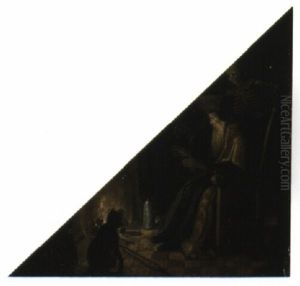 Old Man By Fireplace Flanked By Figure Of Death