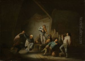 INTERIOR OF A BARN WITH PEASANTS CAROUSING ('THE SENSE OF SMELL')