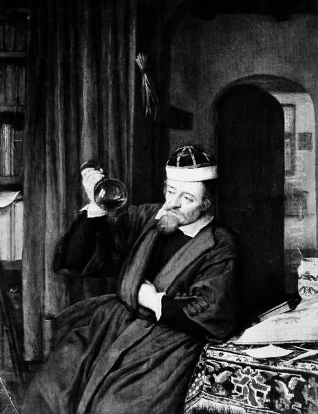 Physician examining his own urine and feeling his heart-beat