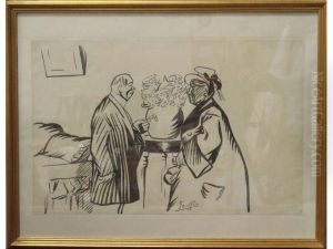 A Man And A Woman Conversing Outside A House, A Boy Playing With A Hoop Nearby