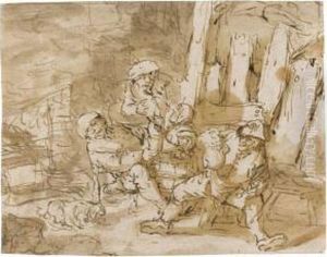 Peasants Smoking And Drinking Outside A Country Cottage